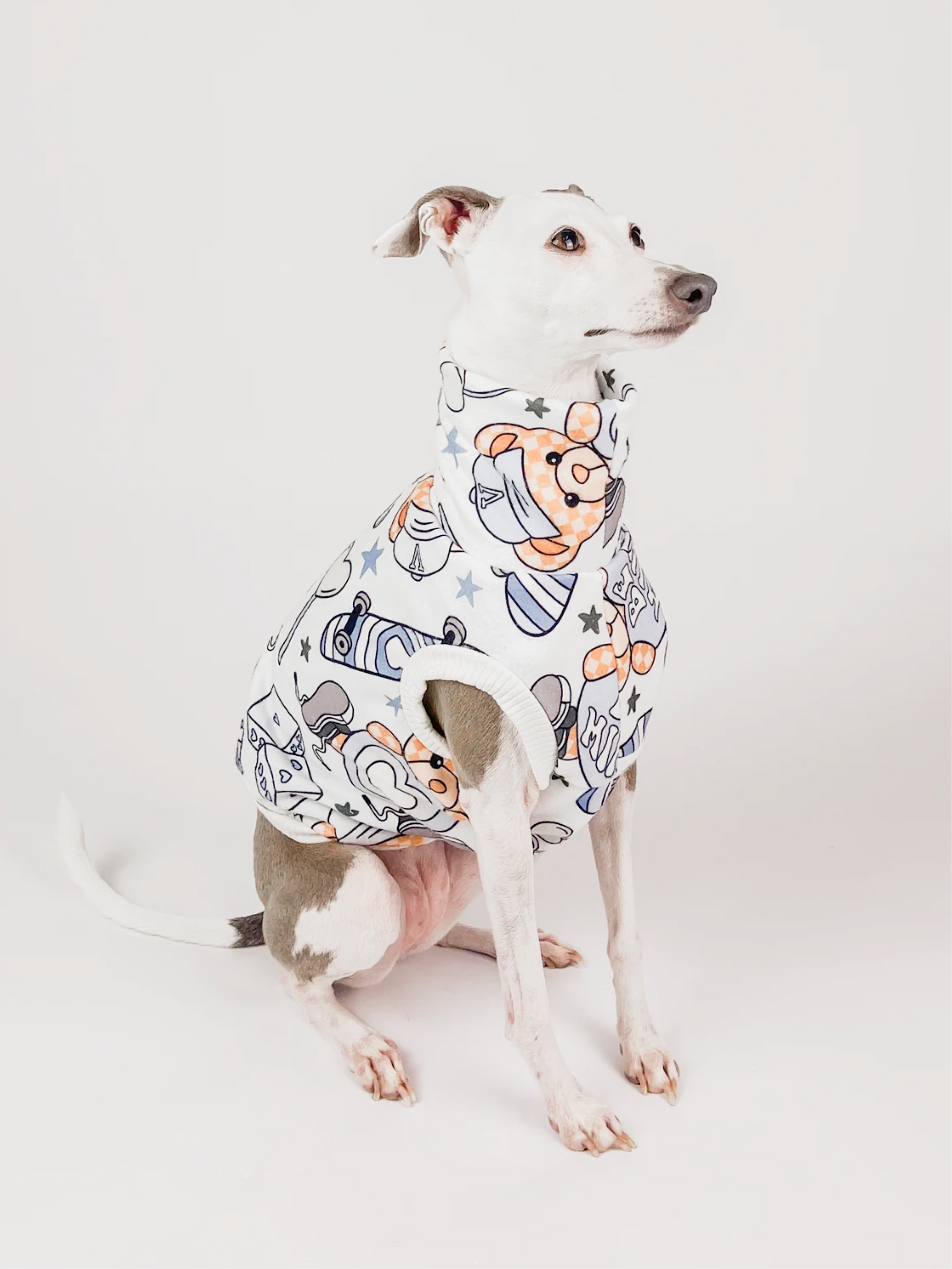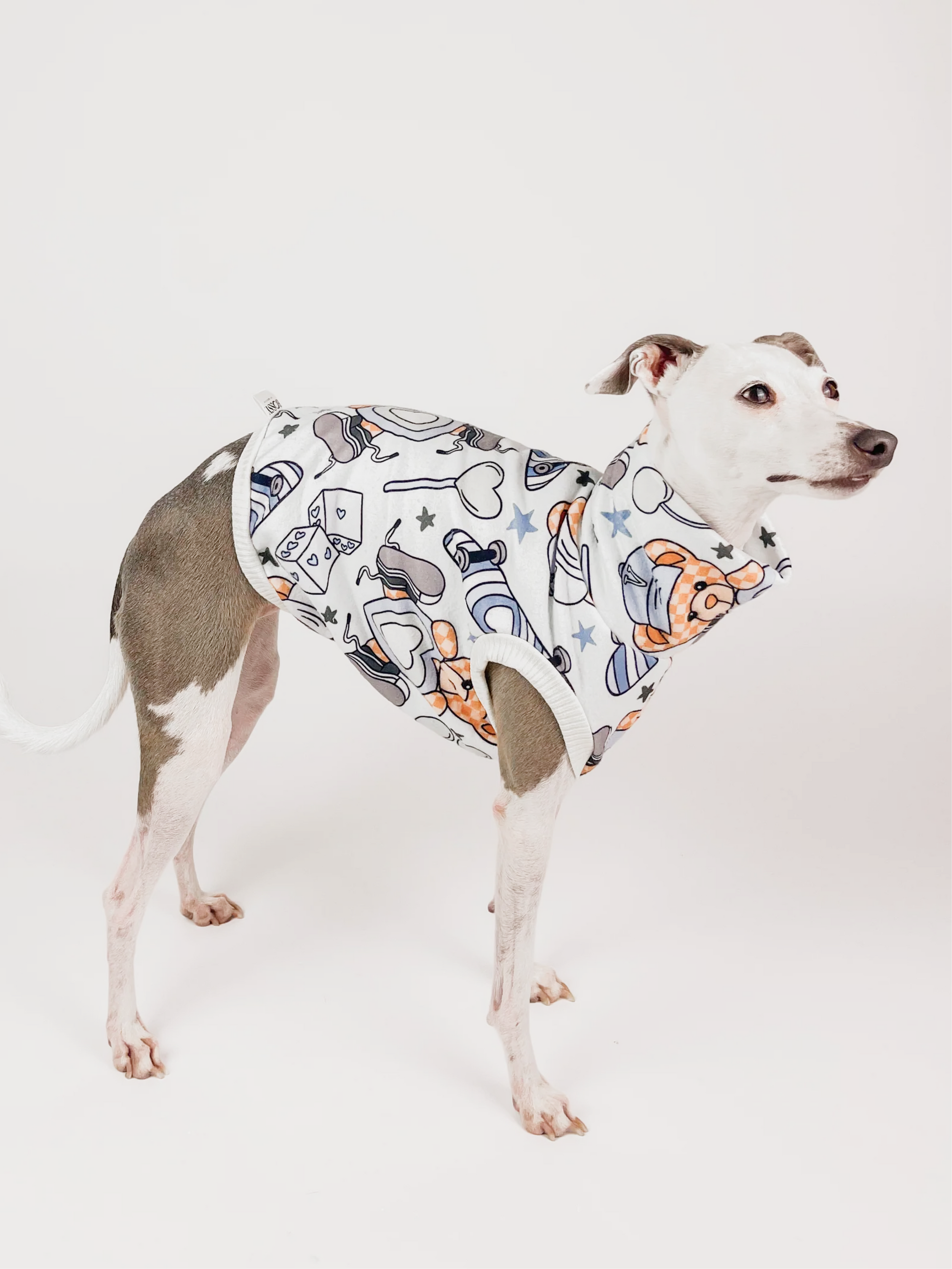 Model: Boston wears an Italian Greyhound size S with extra length.