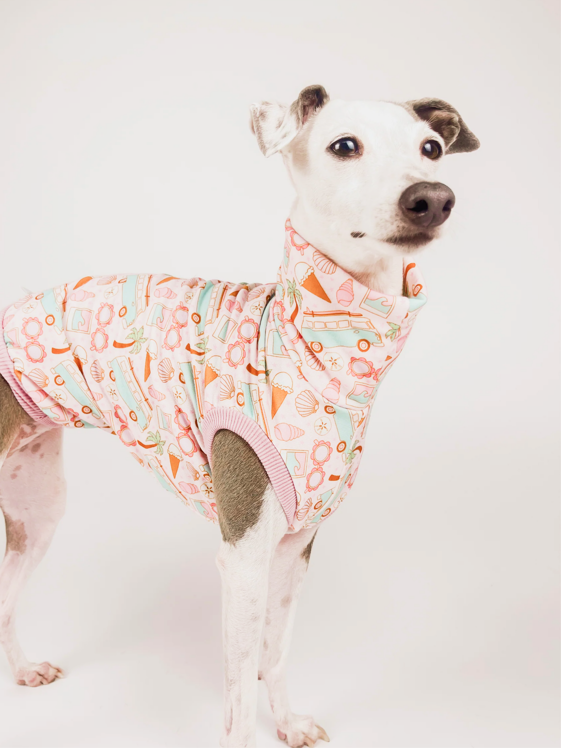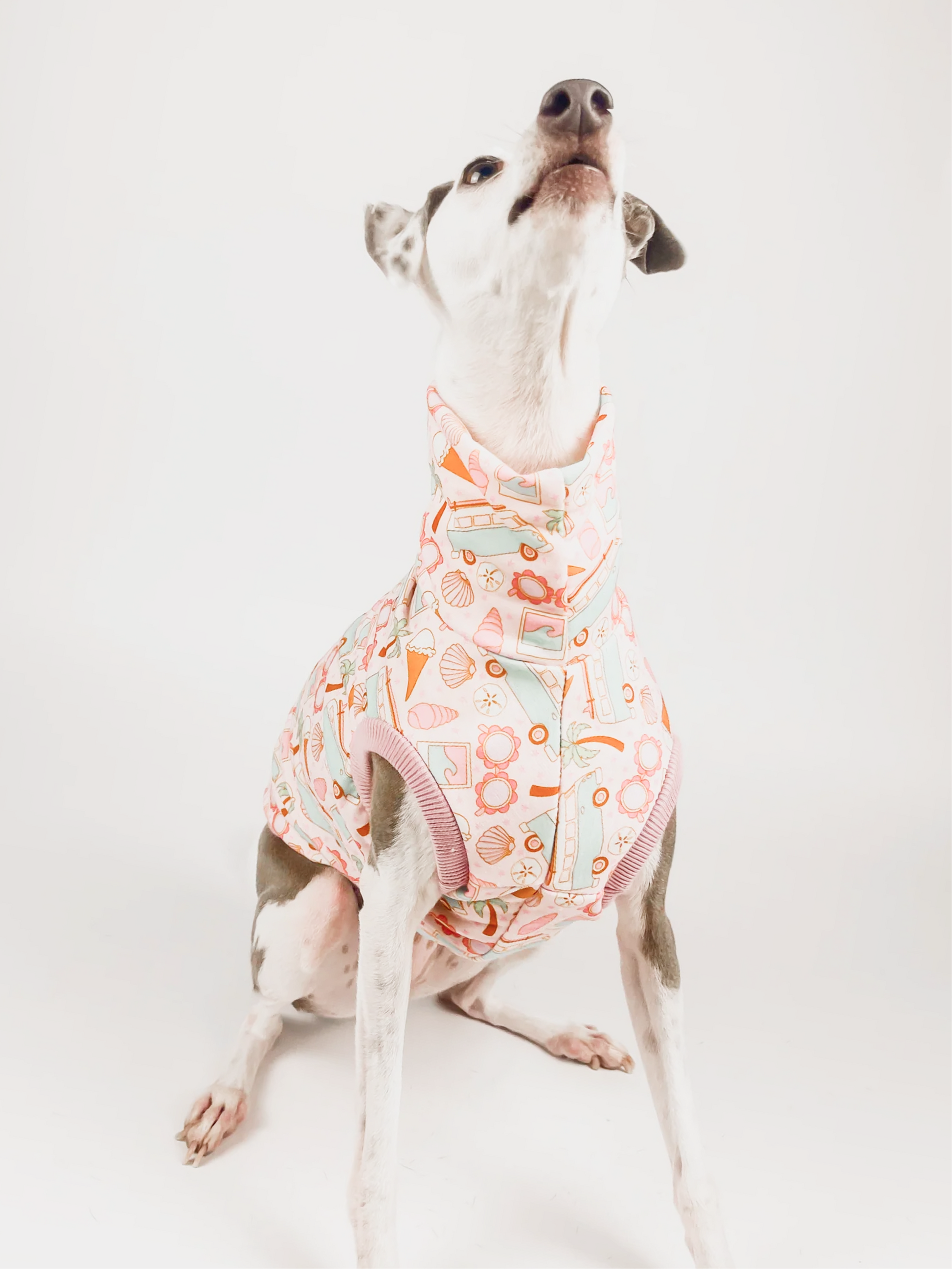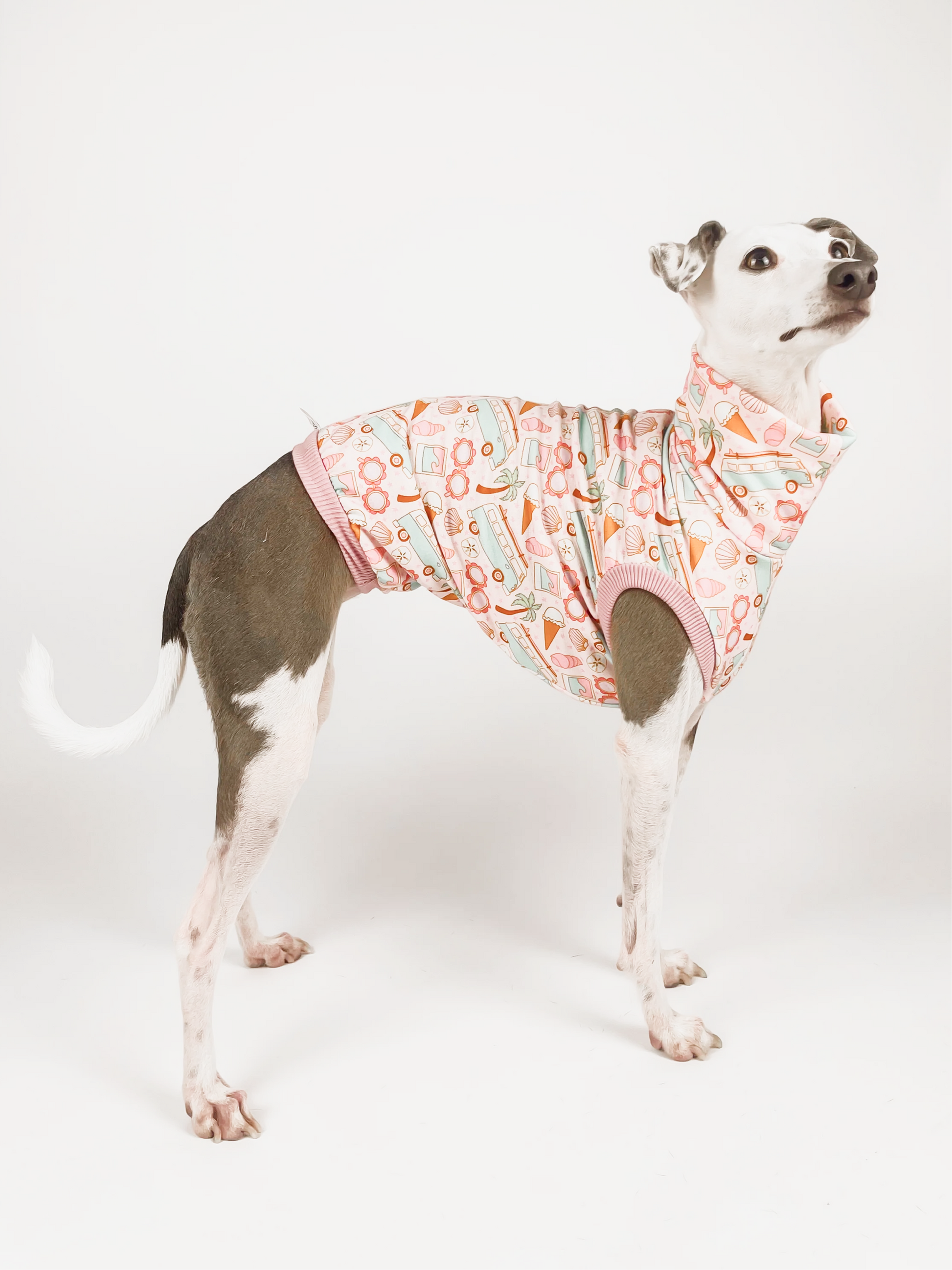 Model: Boston wears an Italian Greyhound size S with extra length.