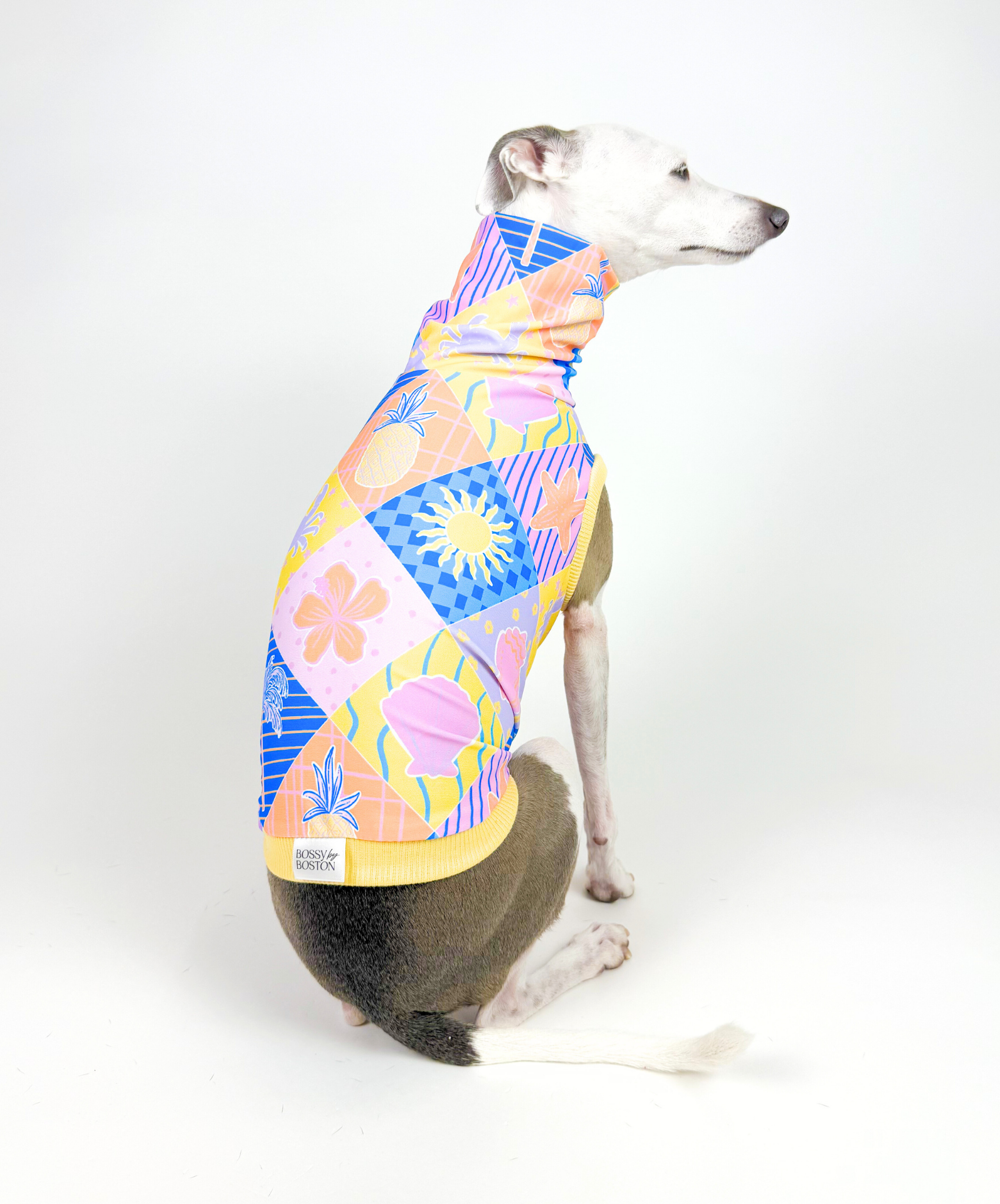 Model: Boston wears an Italian Greyhound size S with extra length.