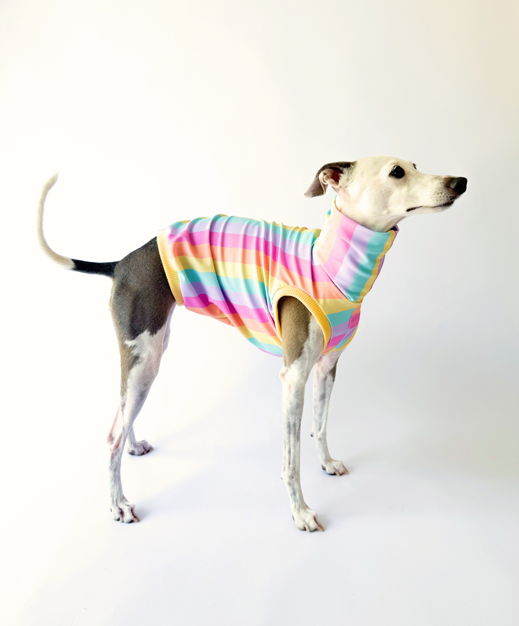 Designed for sunshine soaked days and hounds who love to stand out. Sorbet combines serious UPF50+ sun protection with a lightweight, breathable performance fabric that keeps delicate sighthound skin safe and cool during warm weather adventures.